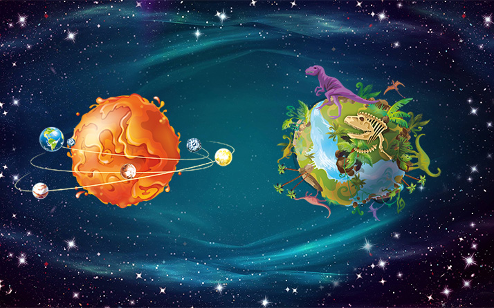 Αρχικά επιλέγουμε τη θεματική που μας ενδιαφέρει: Πλανήτες ή Δεινόσαυροι, για να ανοίξει μπροστά μας στη συνέχεια, ένας κόσμος παιχνιδιού και γνώσης!